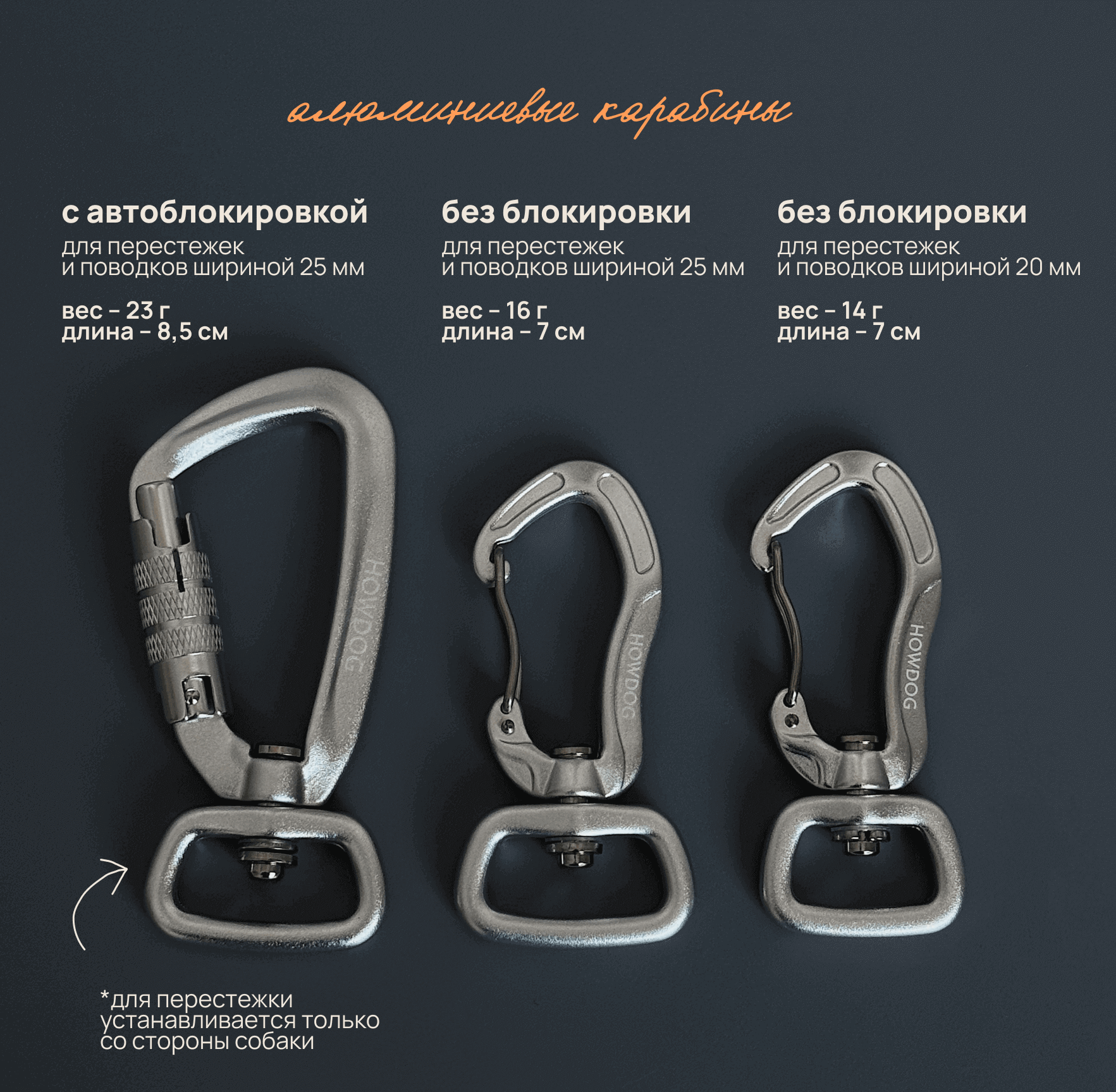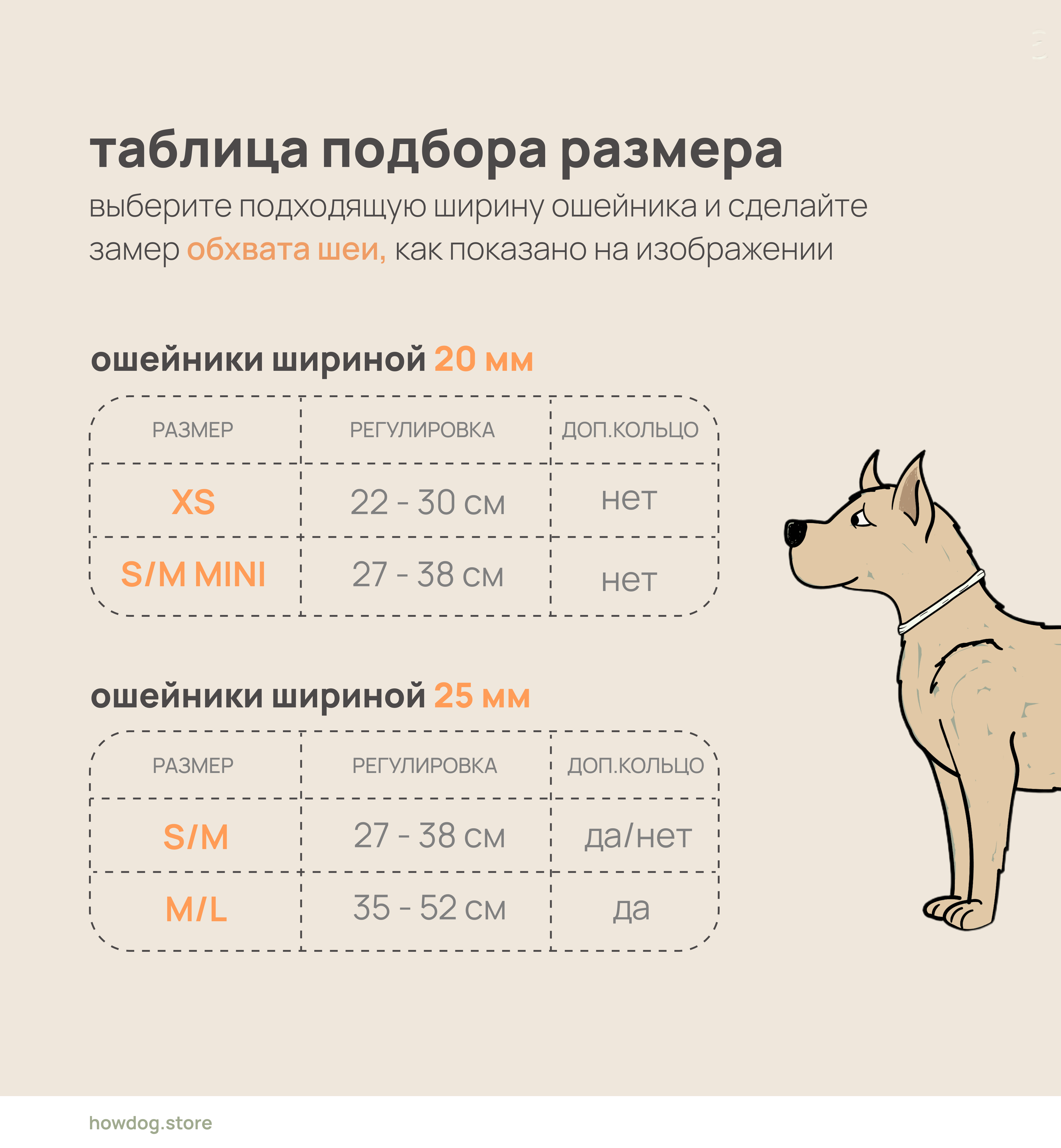 Ошейник изготавливается из стропы, морозостойких застежки-фастекса и регулятора длины, полукольца из алюминия.